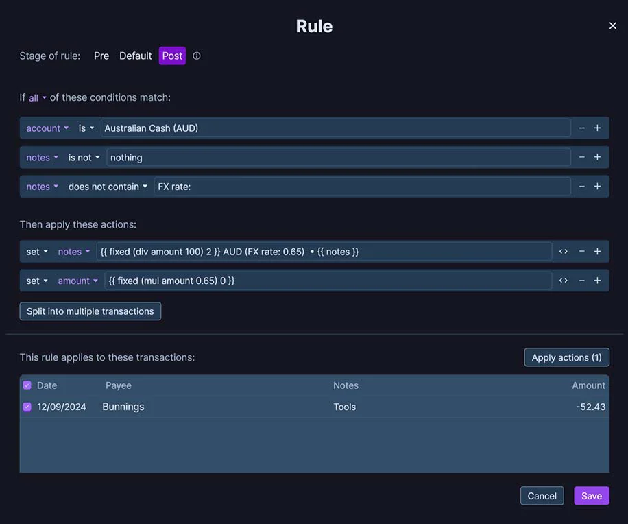 - In Stage of rule select Post.